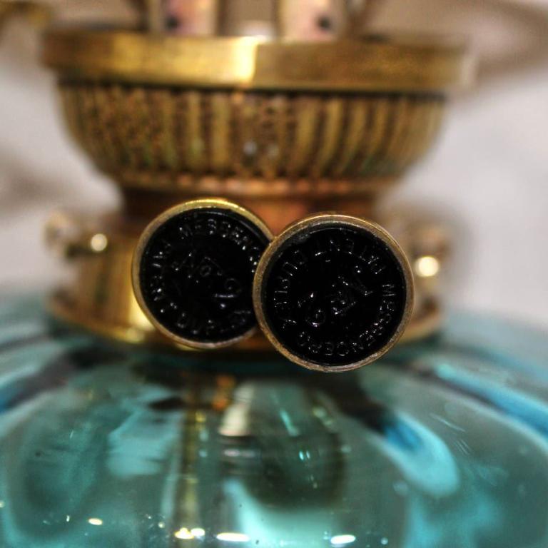 • Lampenkörper mit getrepptem Marmorfuss, übergehend in Marmorsäule (beidseitig mit Bronzeguss-Verzierungen). Abschluss bildet ein blaues gewelltes Bassin