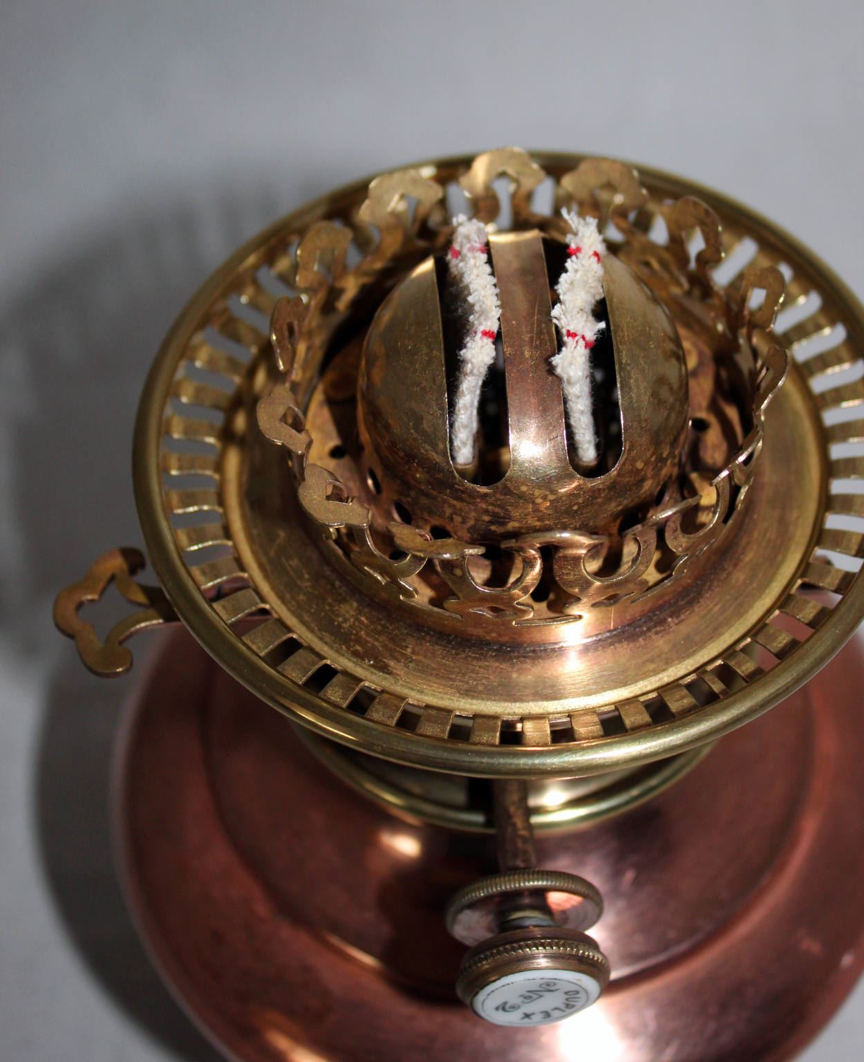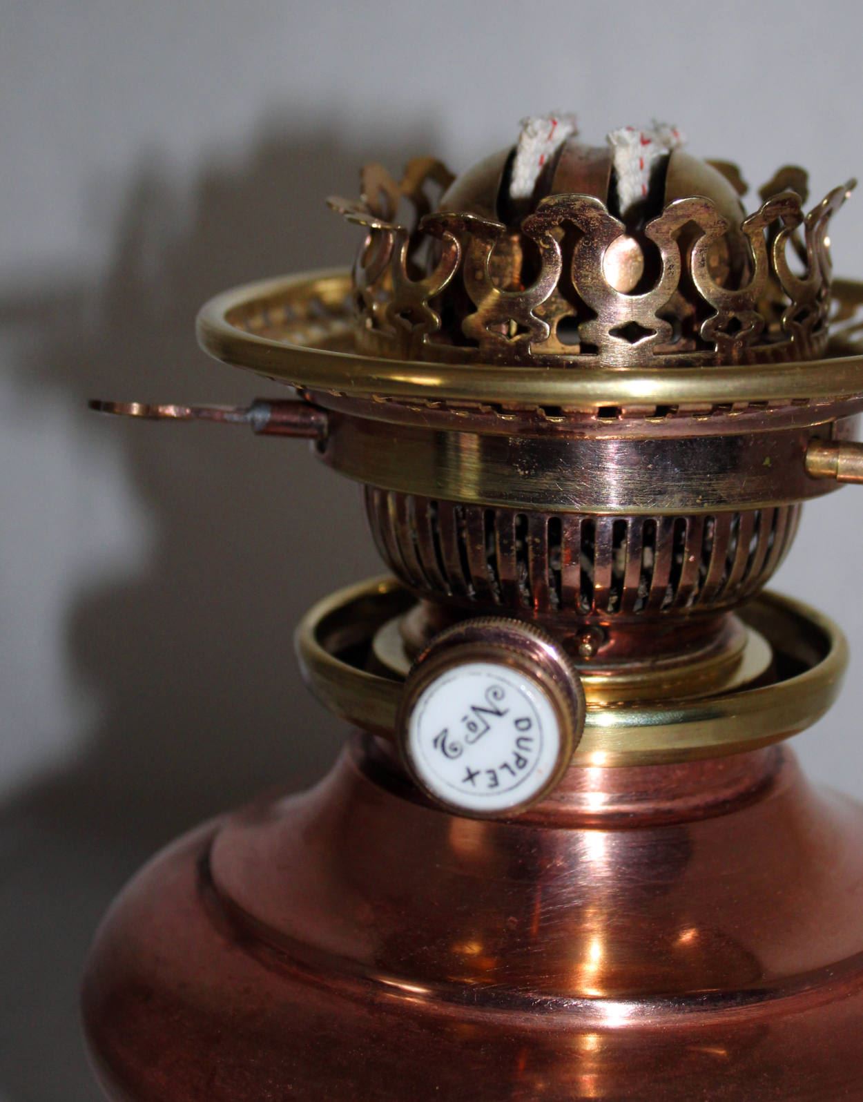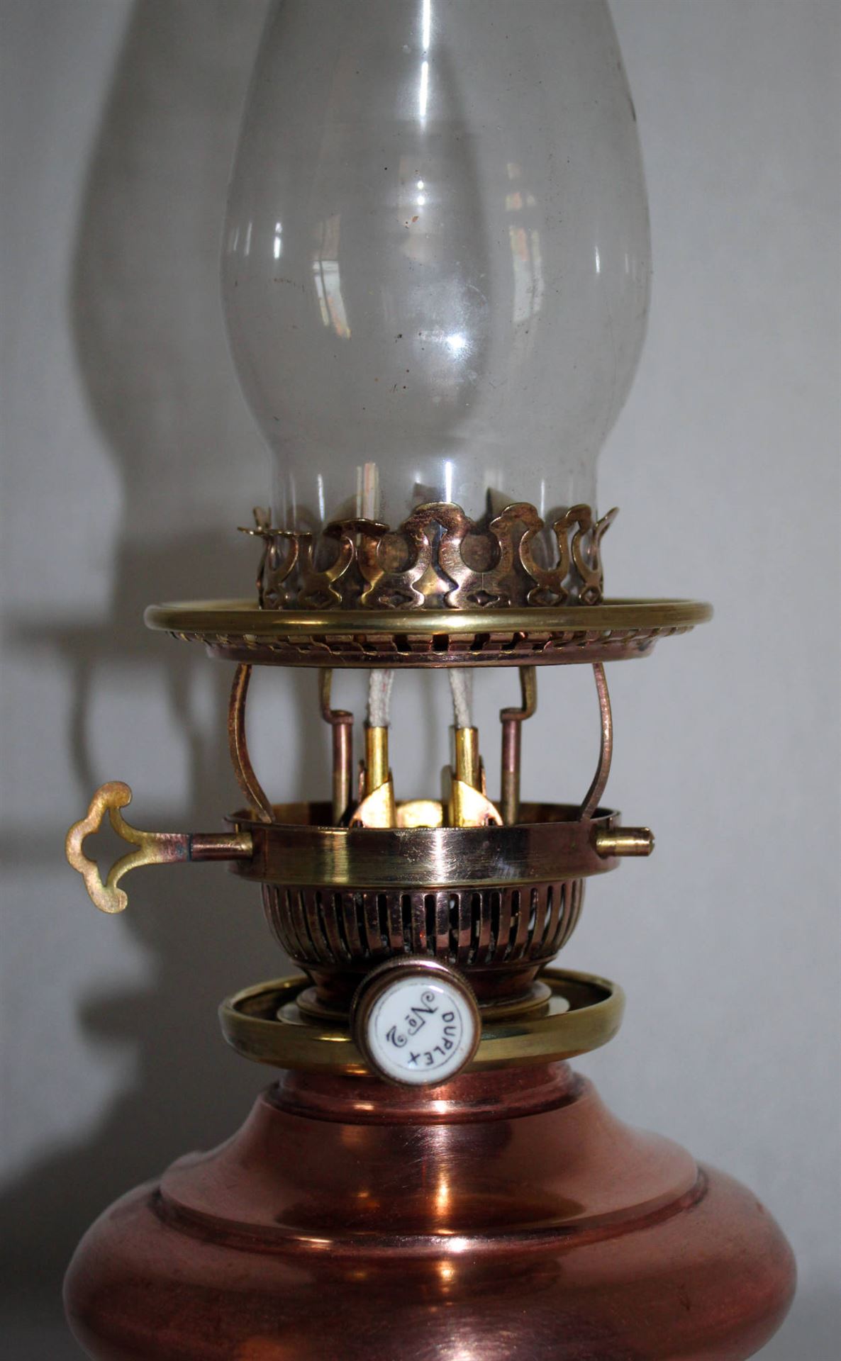 Duplexbrenner wohl von Hinks & Son mit Galerieheber und Dochtlöscher