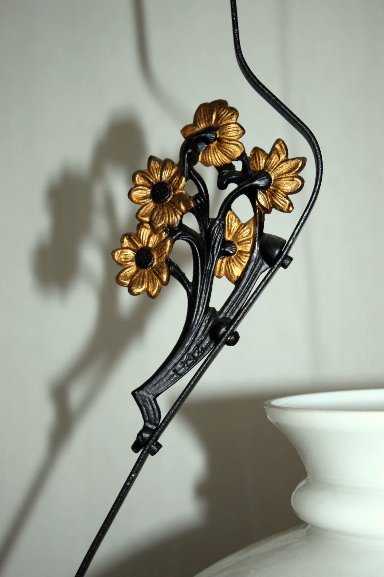 Hängevorrichtung in Lyra-Form Ø ca. 385 mm aus Eisenband, mit Verzierungen in Jugendstil aus Gusseisen