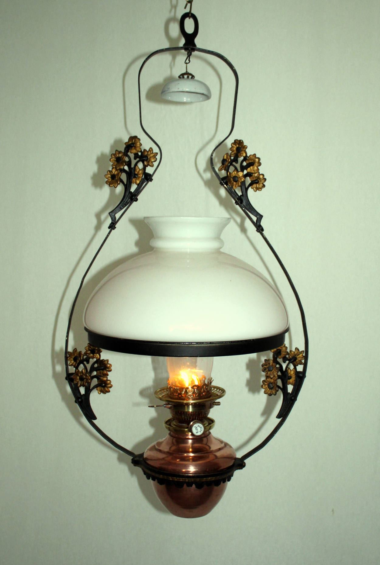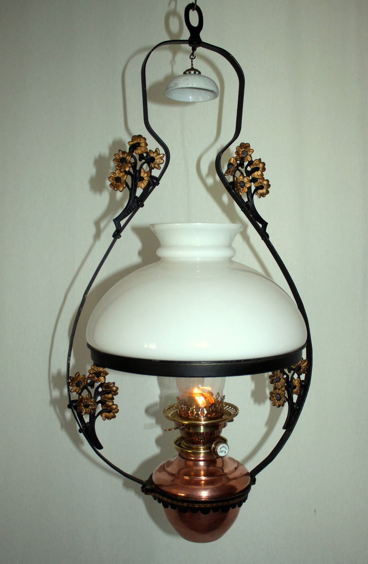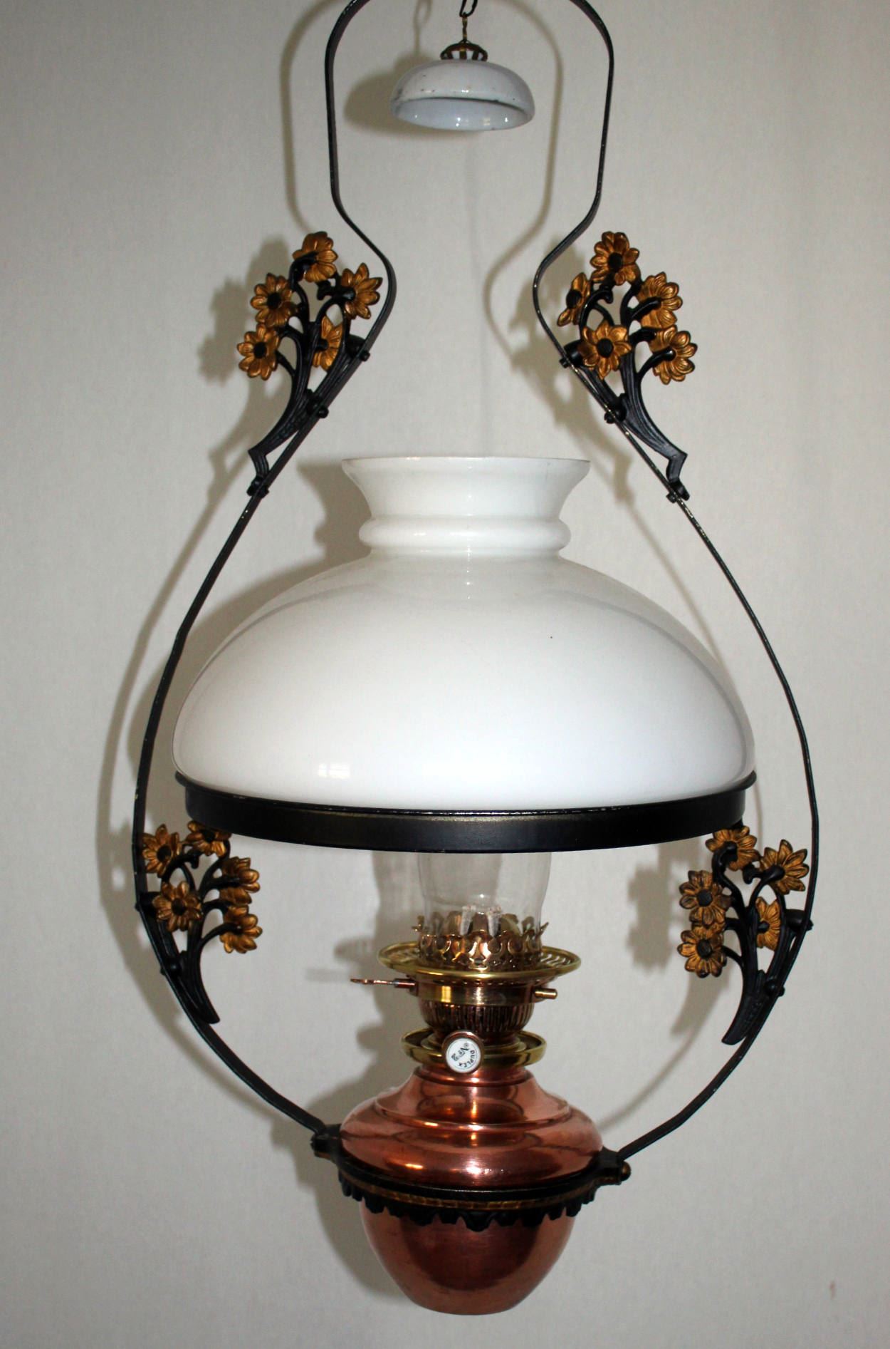 new Hinks Hängelampe ohne Nummerierung wohl zwischen 1919 und 1933. Da die Lampe keine Hinks Bezeichnung hat könnte die bereits darauf hinweisen das die Lampe von Falk, Stadelmann & Co. Vertrieben wurde.