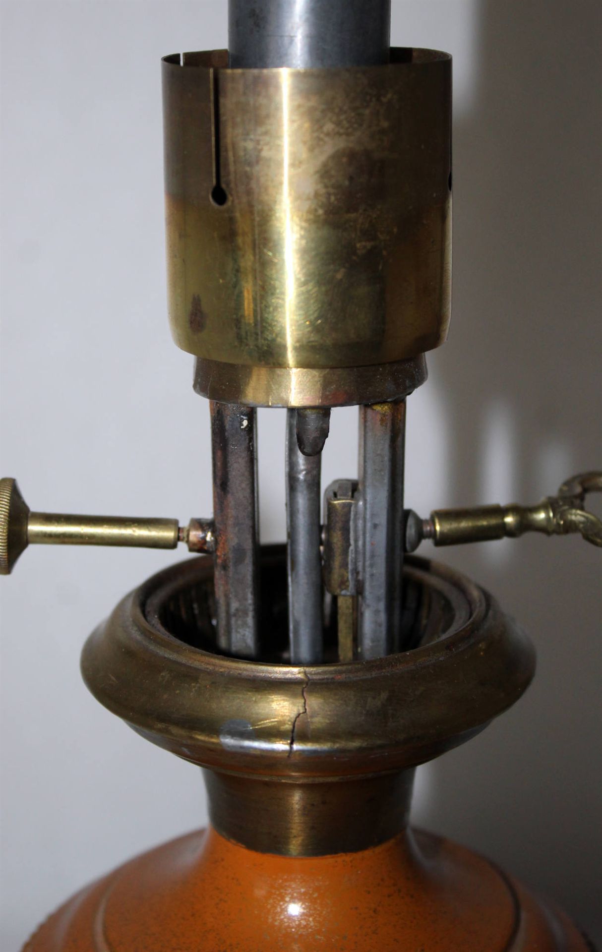 Wir möchten allen Interessenten, die eine Moderateur-Lampe erwerben wollen, deutlich machen, dass die Lampen zwar in einem funktionsfähigen Zustand sind, dass jedoch immer versucht wurde, die Originalteile der Lampen zu erhalten und auch wieder einzubauen. D.h., dass es sich bei den Öllampen um Lampen handelt, die z. T. fast 200 Jahre alt sind, dementsprechend alt sind also auch die Teile. Die Lampen sind deshalb nicht zum Brennen gedacht.