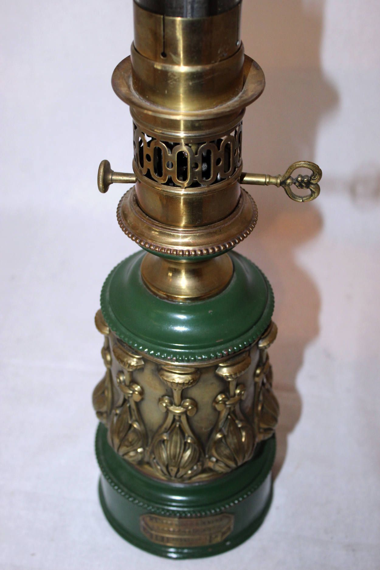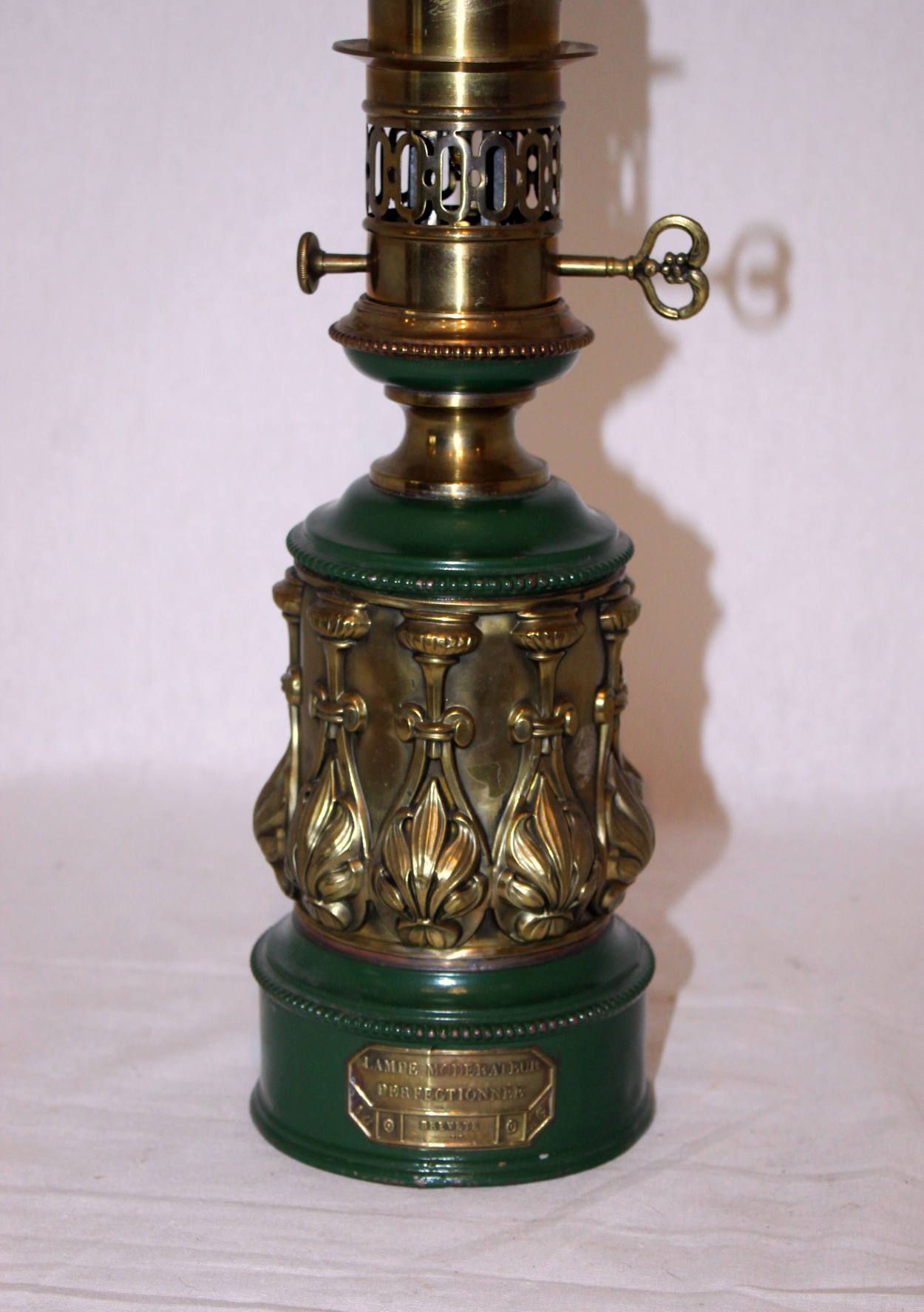 Modérateur-Öllampe aus Frankreich. Lampe ist mittels Messingschild beschriftet "Lampe Moderateur Perfectonnée Brvette"