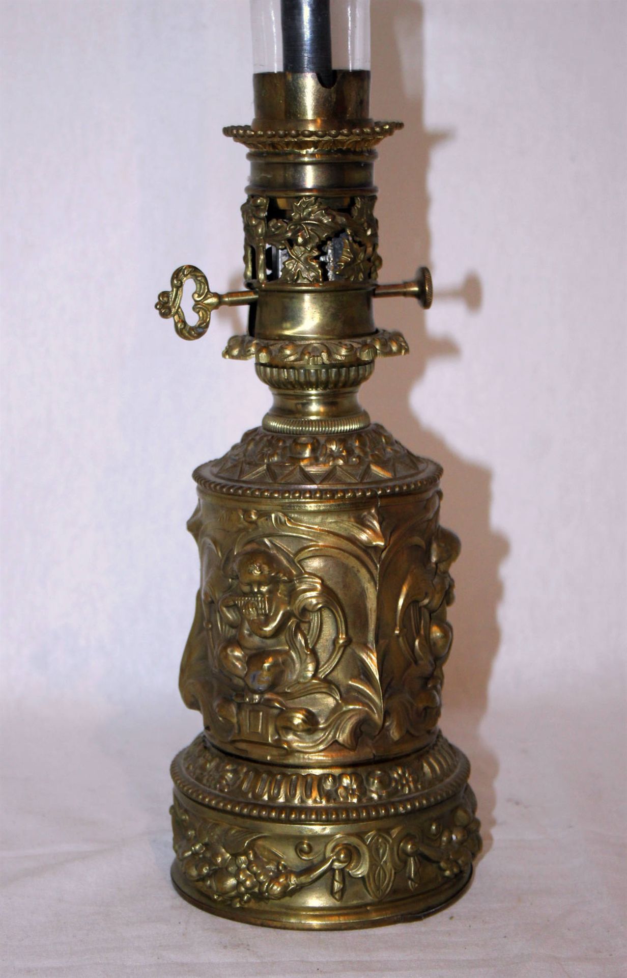 Modérateur-Öllampe aus Frankreich, Lampe ist mittels Messingschild beschriftet "Lampe Moderateur T et G Brevetés S.G.DG, A. Grille et a Piston Douele