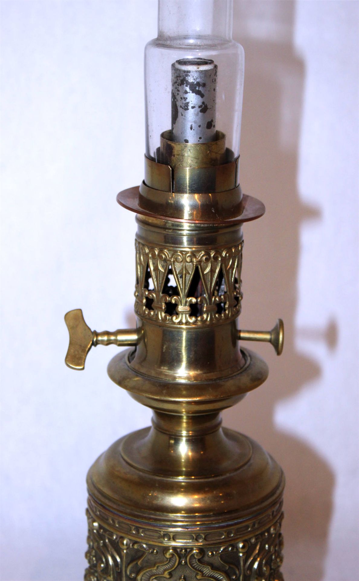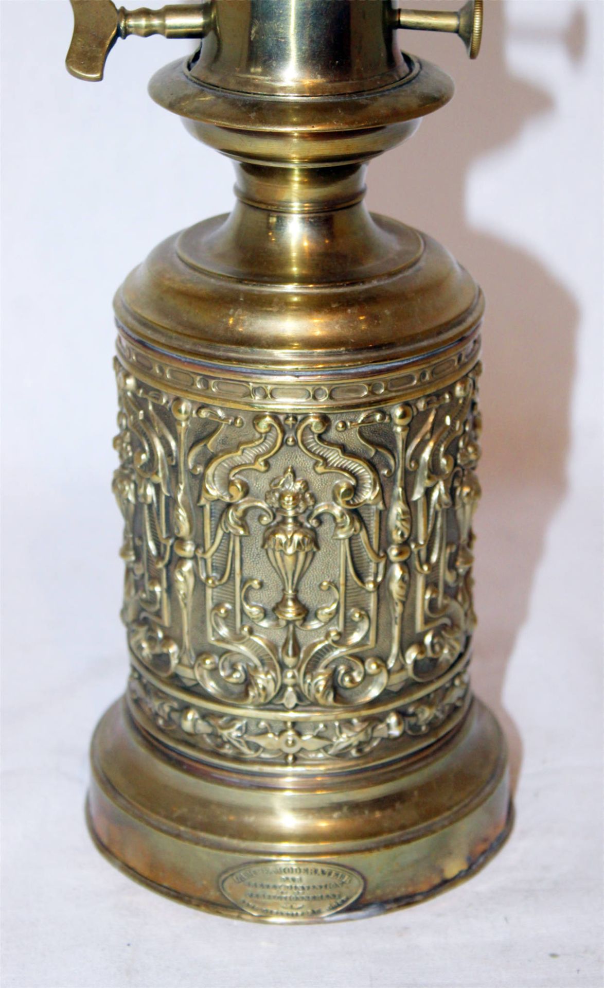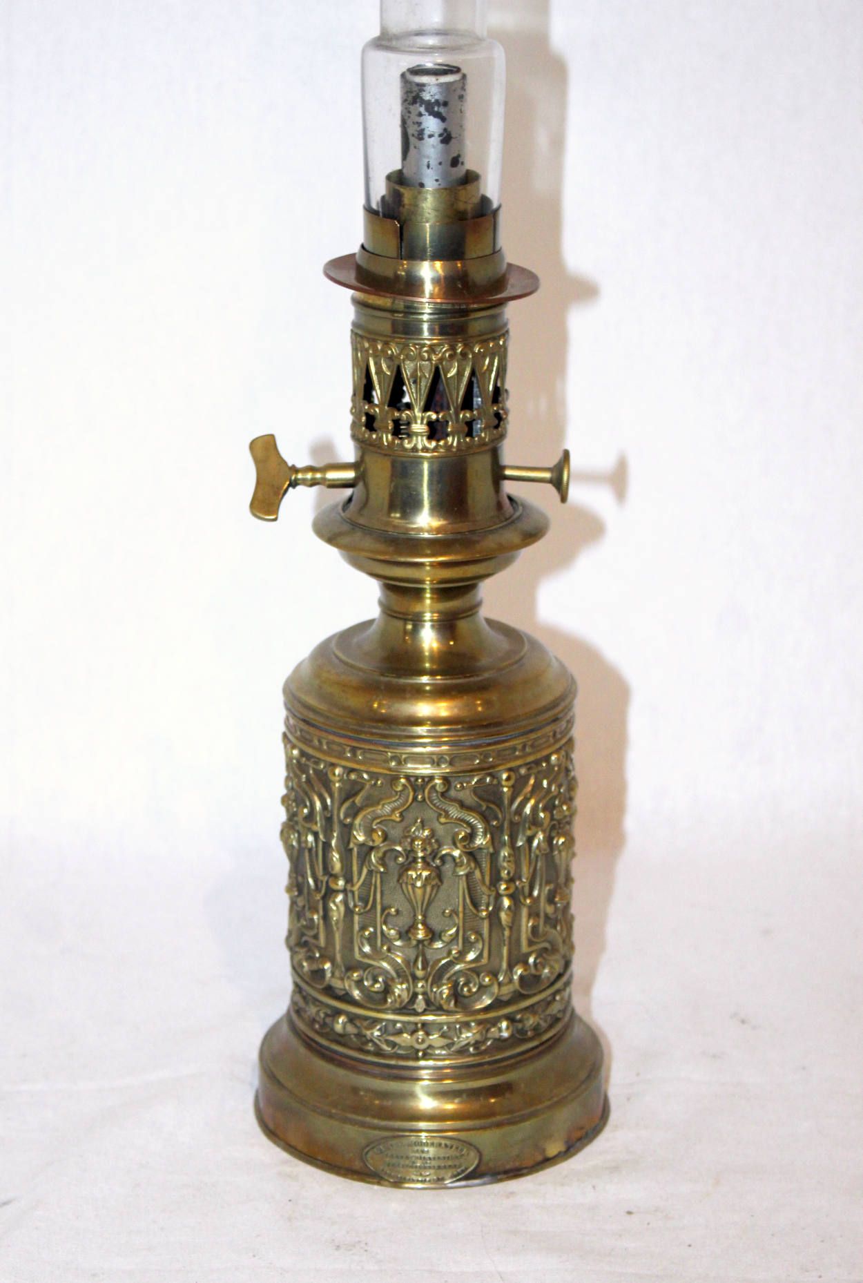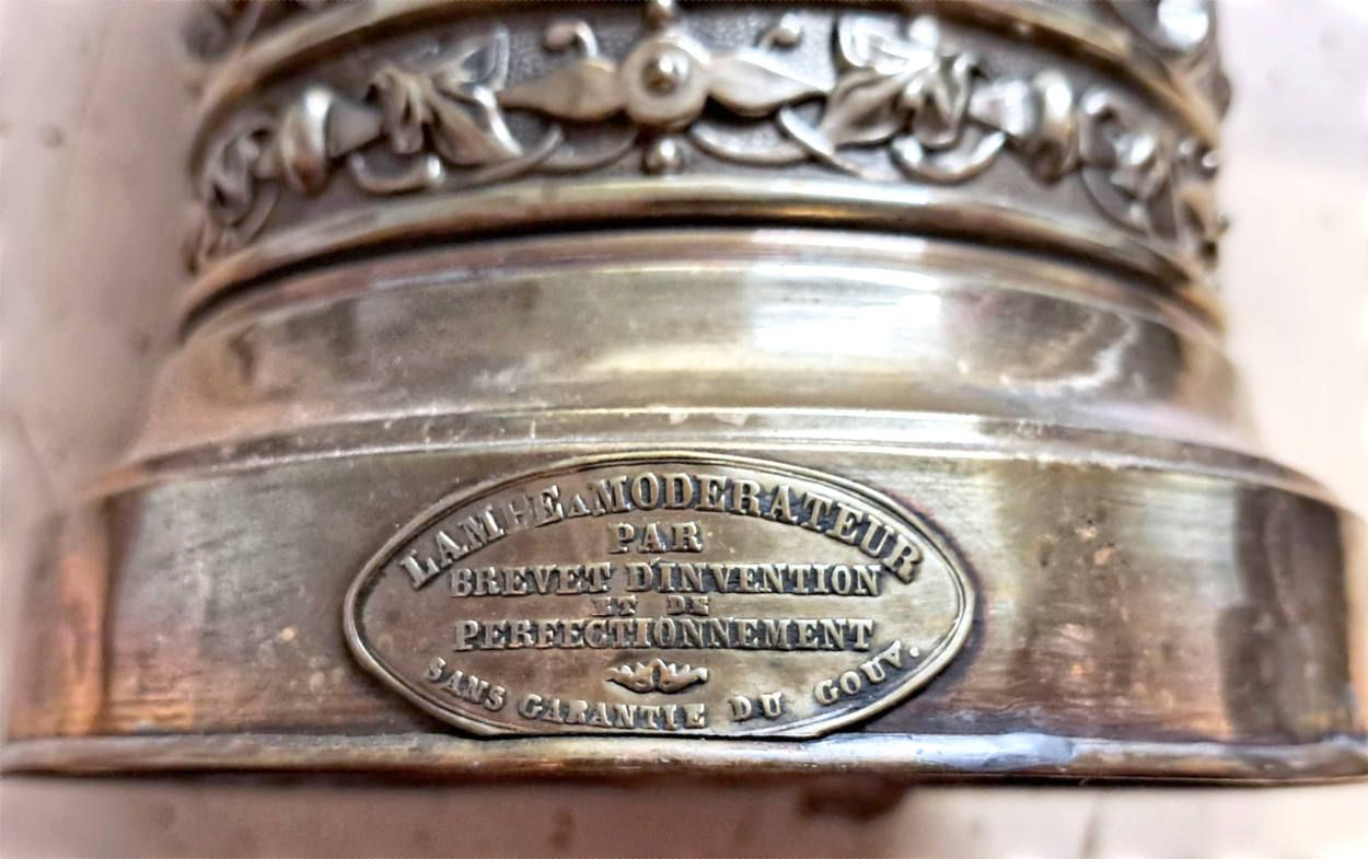 Modérateur-Öllampe aus Frankreich, Lampe ist mittels Messingschild beschriftet "Lampe Moderateur par Brevete Dinvention et de Perfectionement sans Garantie du Gouvt"