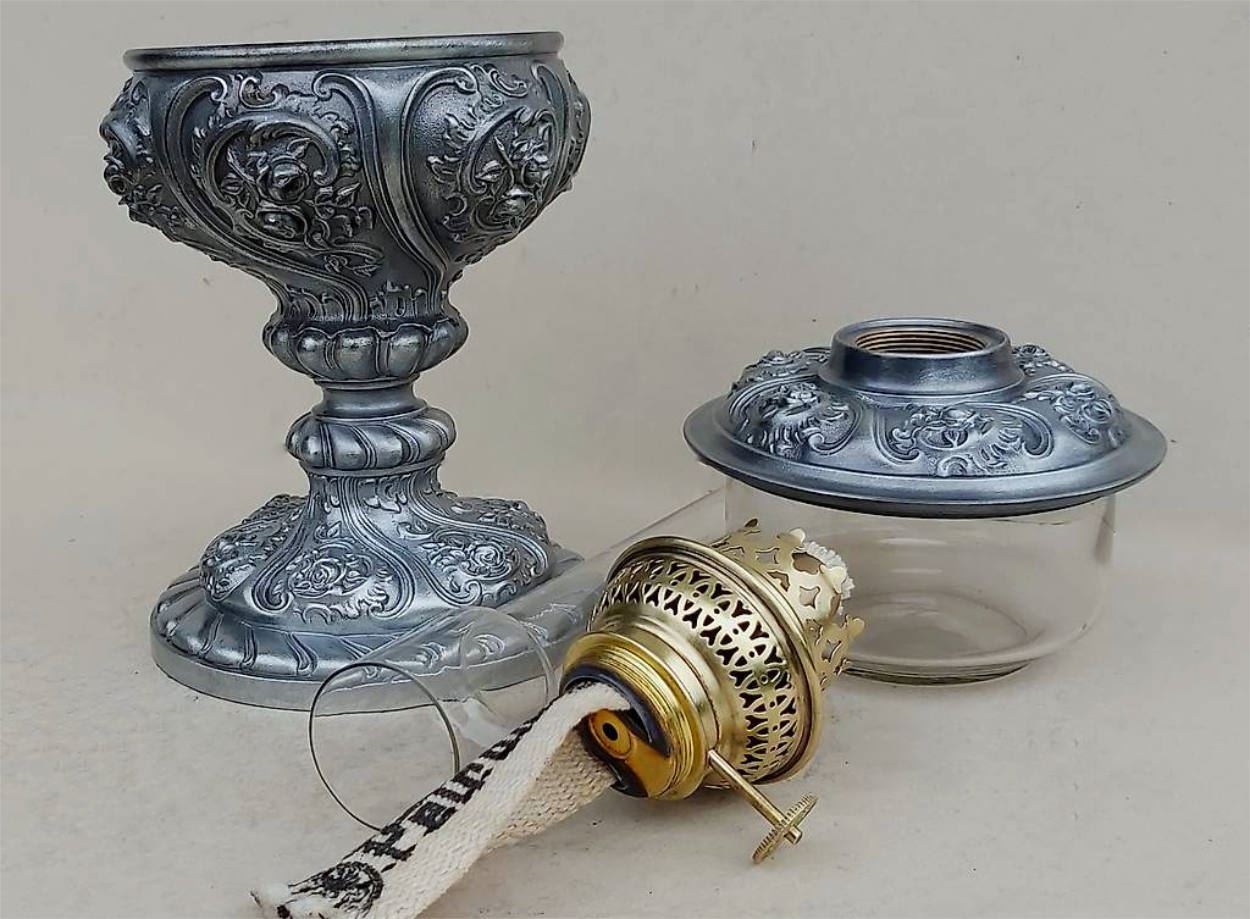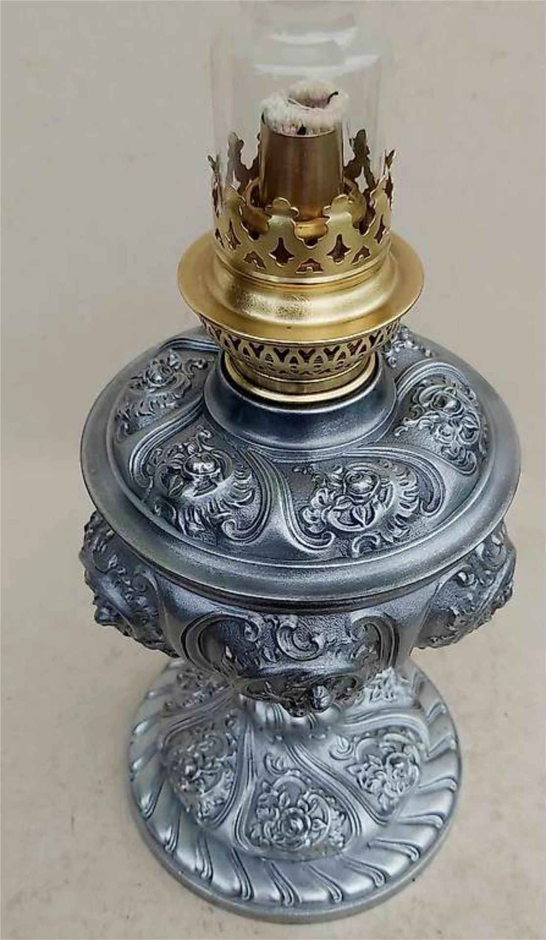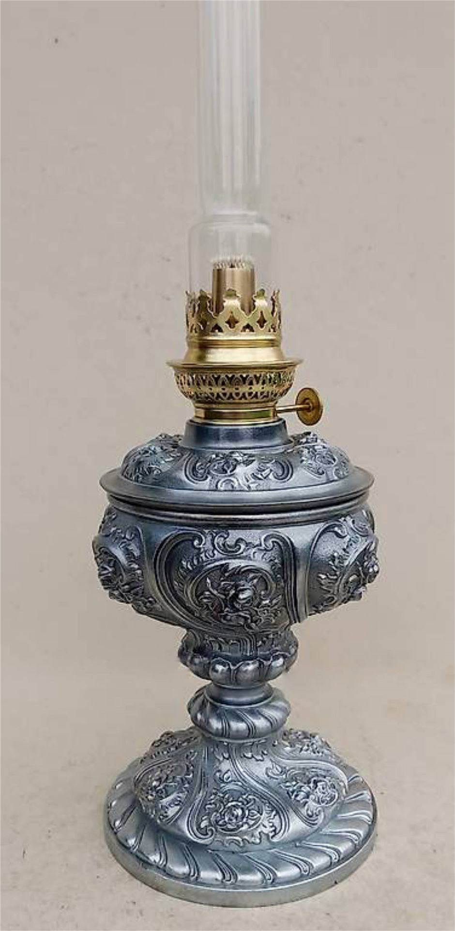 Sehr schöne, alte Zinkguss Petrollampe mit tollem Rosendesign ca.1900-20