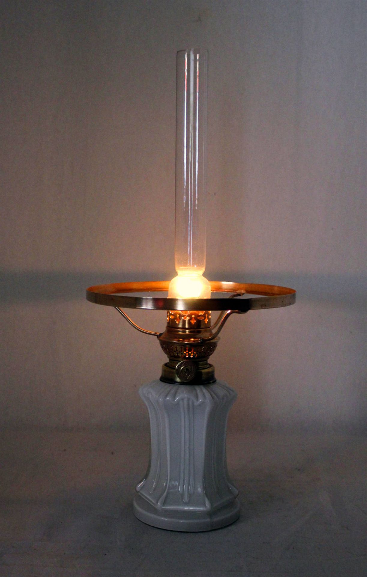 Die Vase ist fein kanneliert und bildet gleichzeitig das Bassin der Lampe