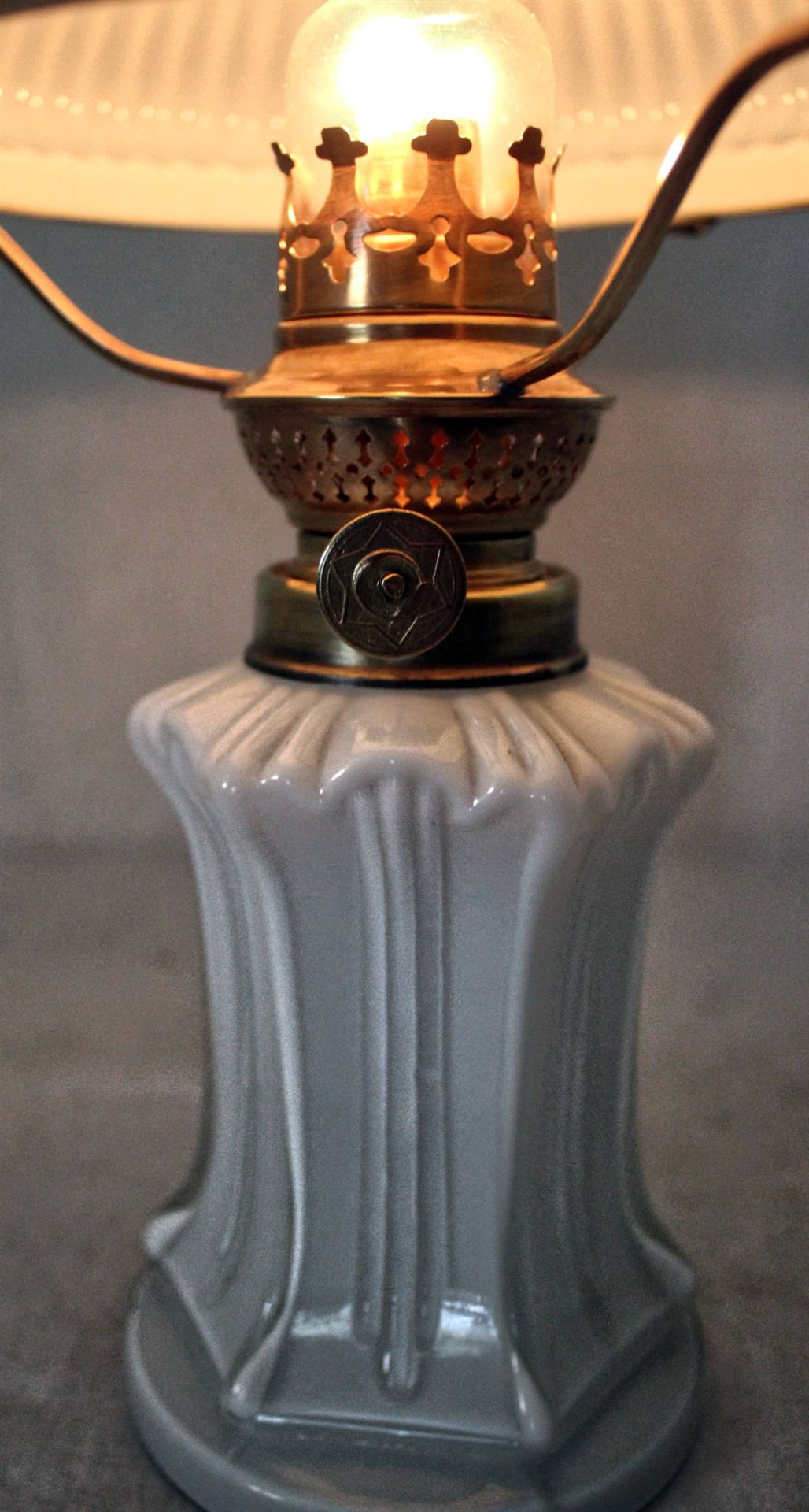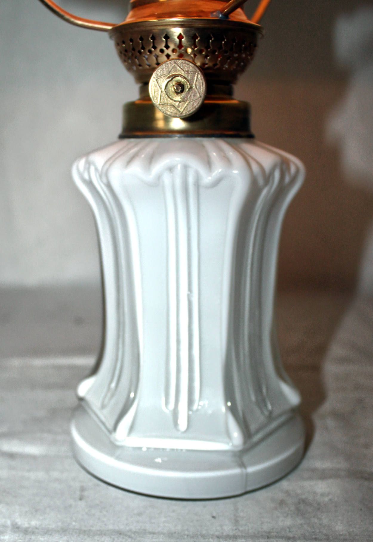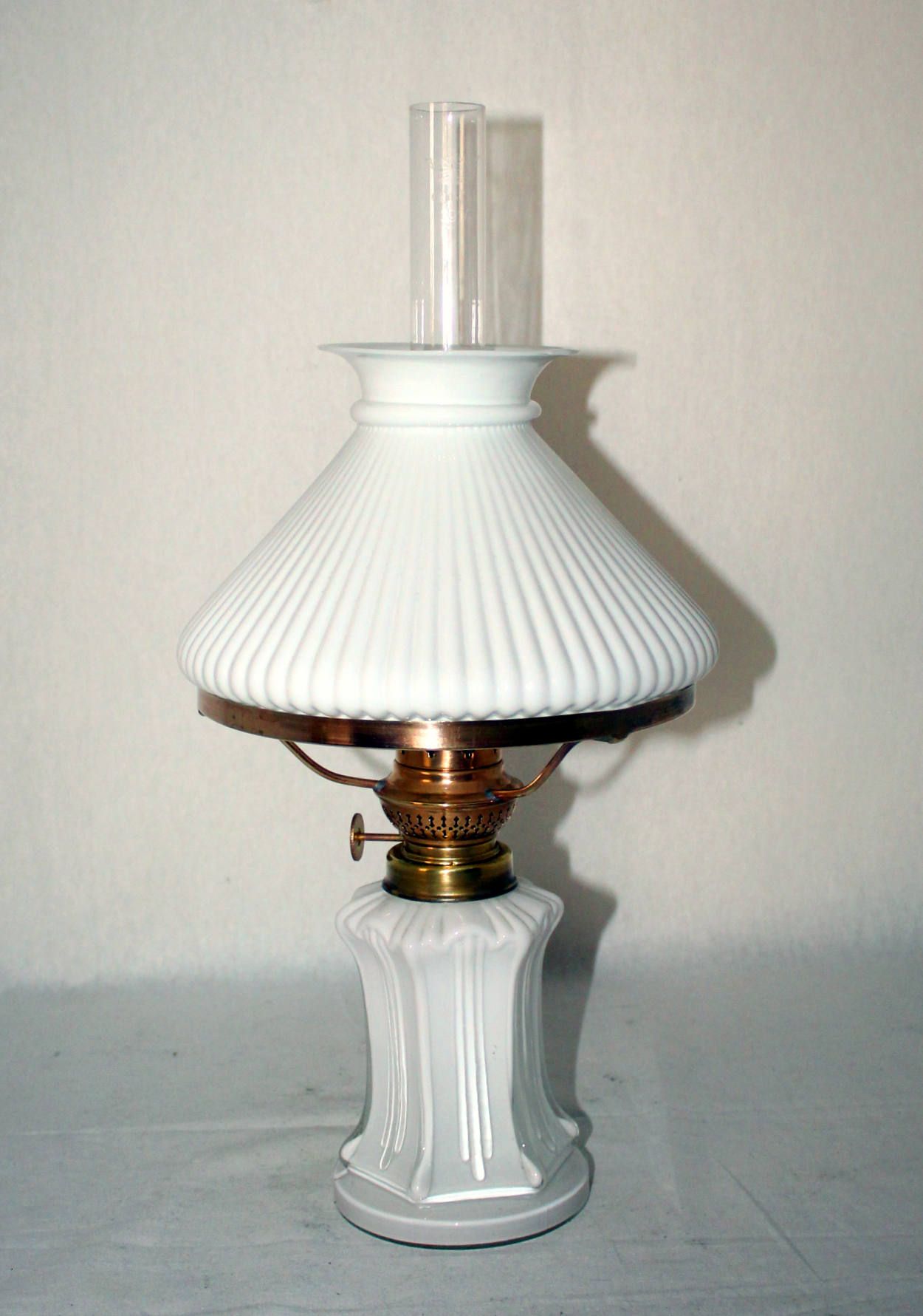 Antike Tischlampe Weißes Überfang-Pressglas