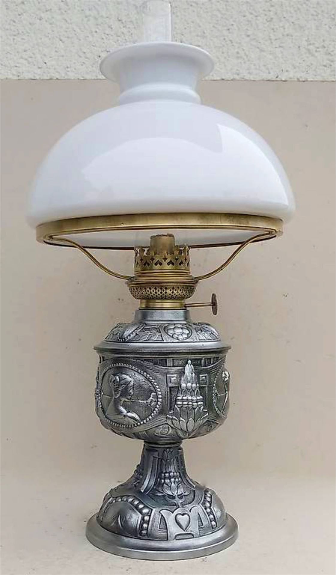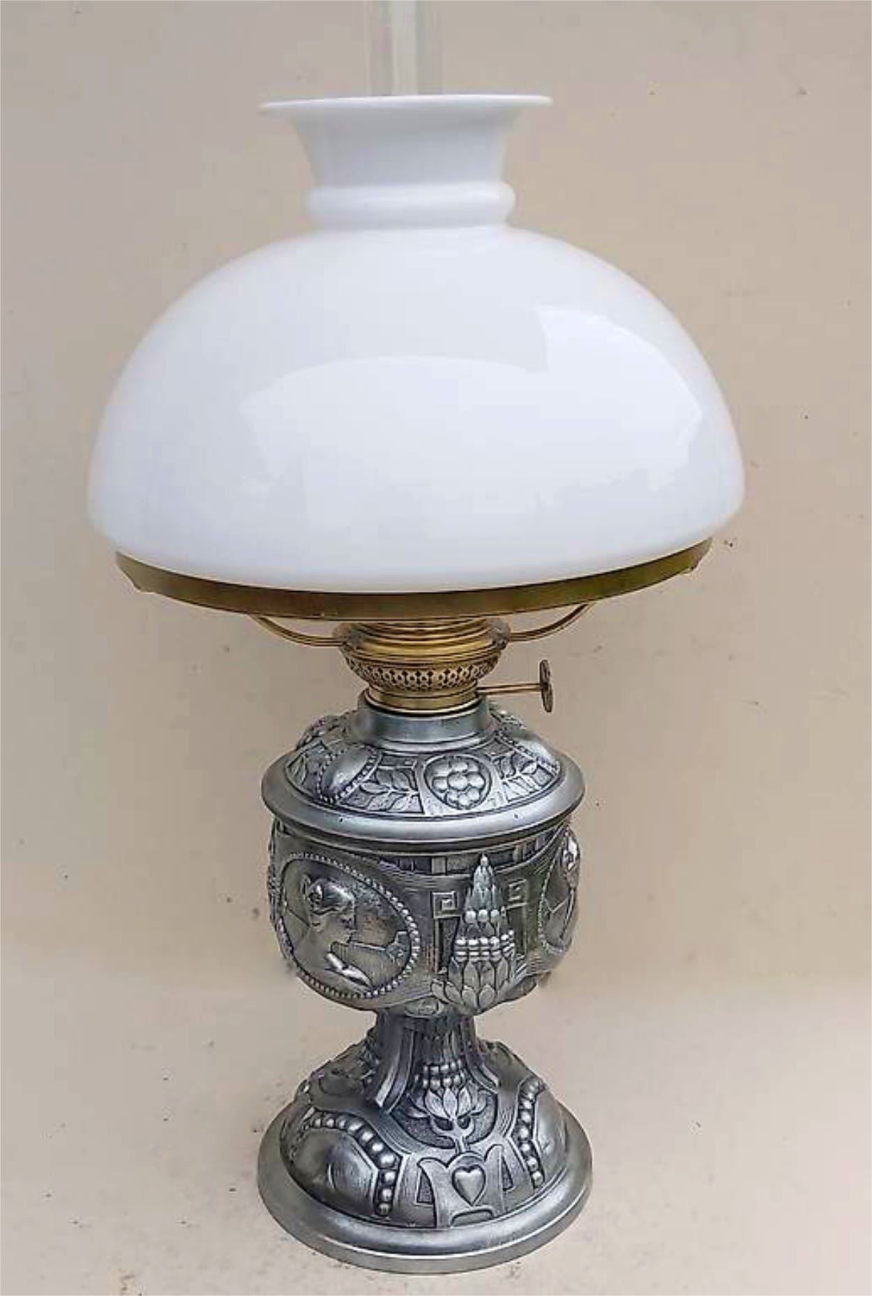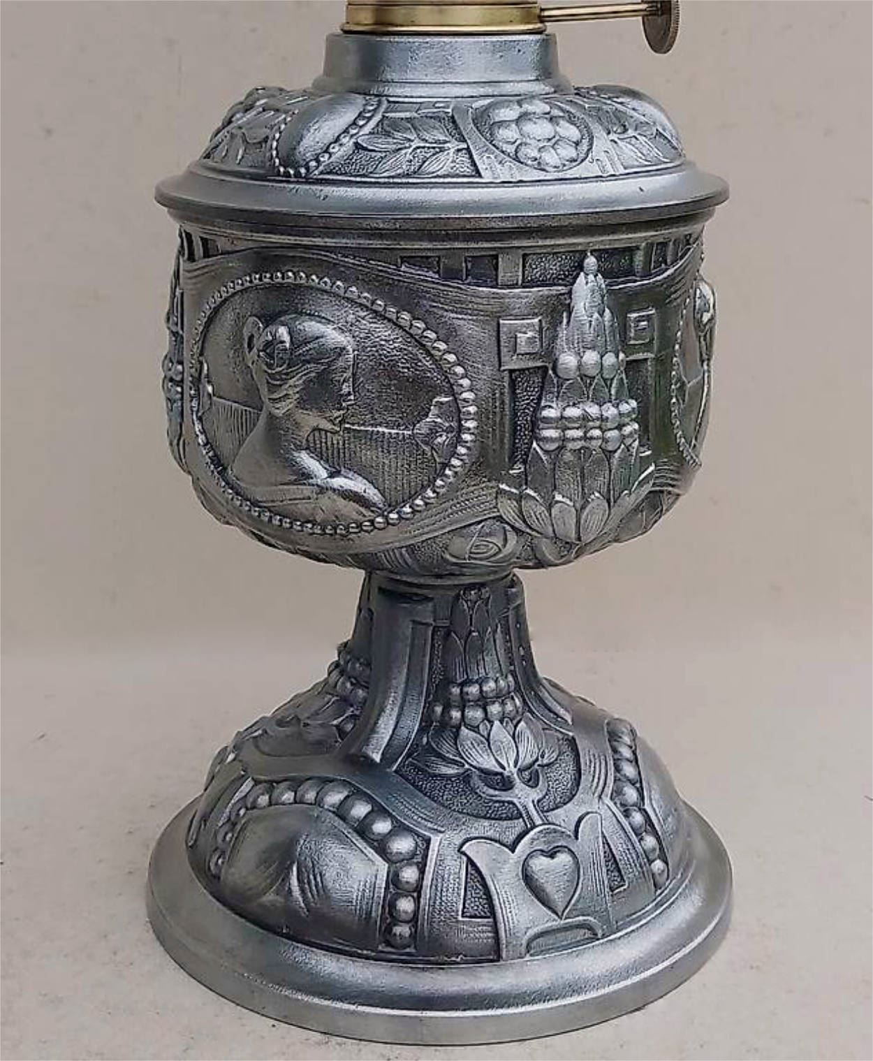 Petroleumlampe um 1920 mit Superschöne mit eindrücklichen Jugendstilverzierungen.