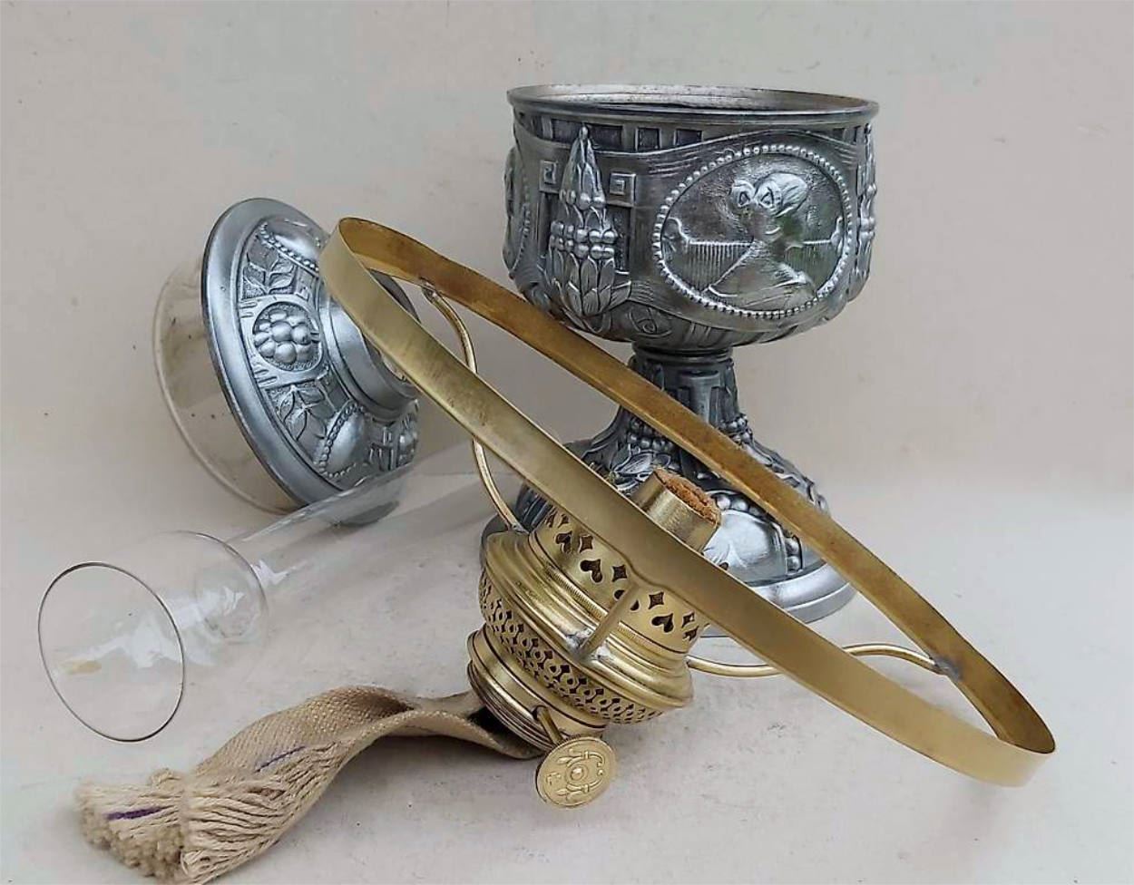 Lampenkörper Zinkguss wunderschön verziert. Lampenkörper teilbar mit verstecktem Glasbassin