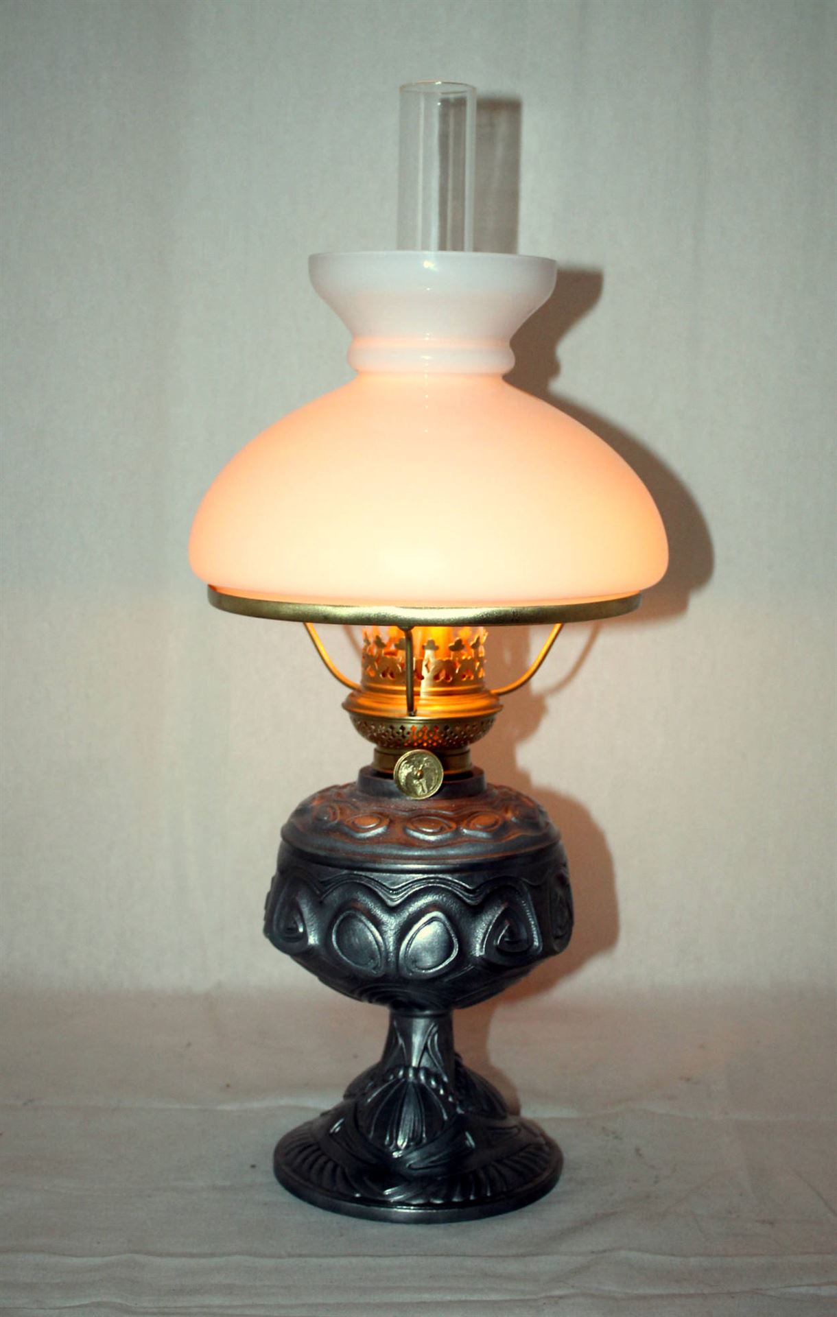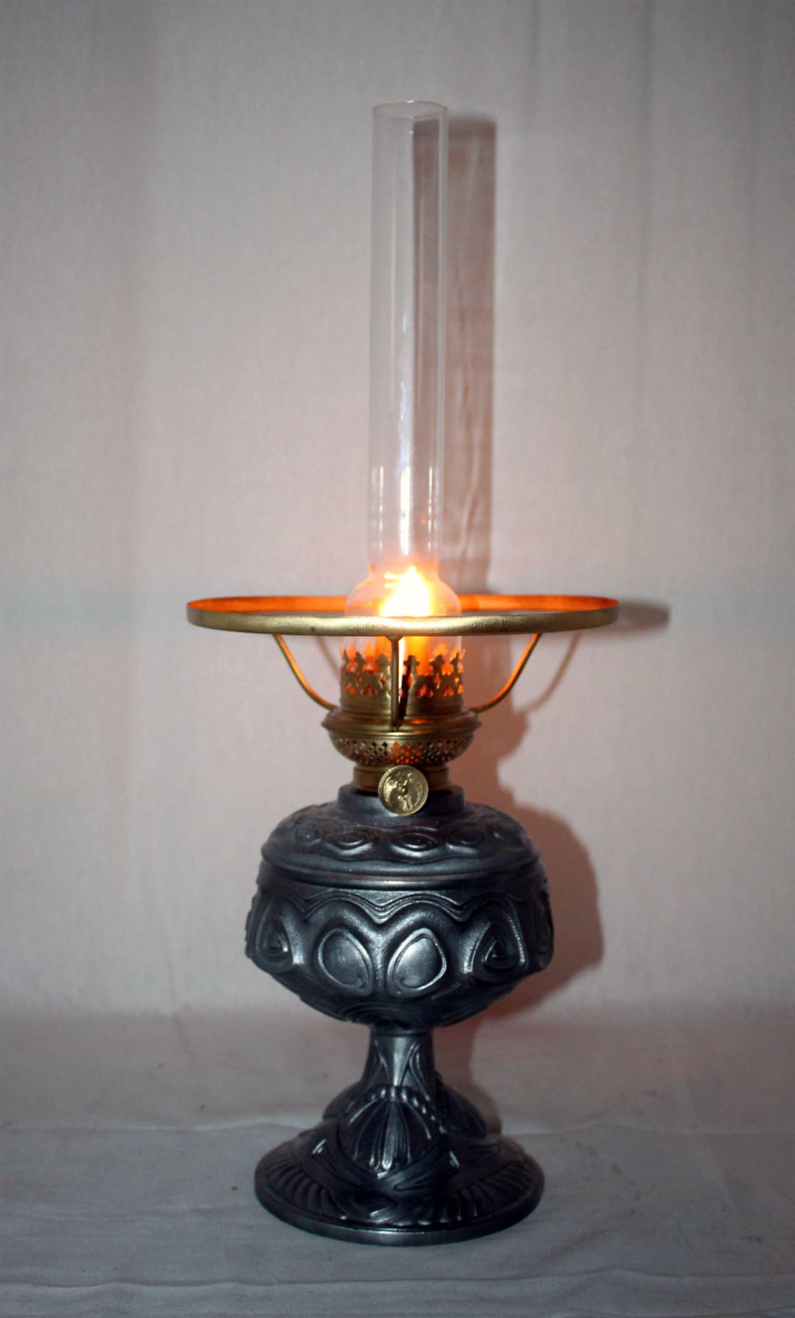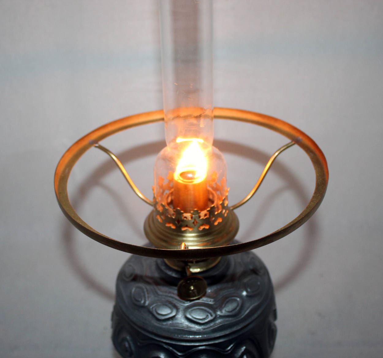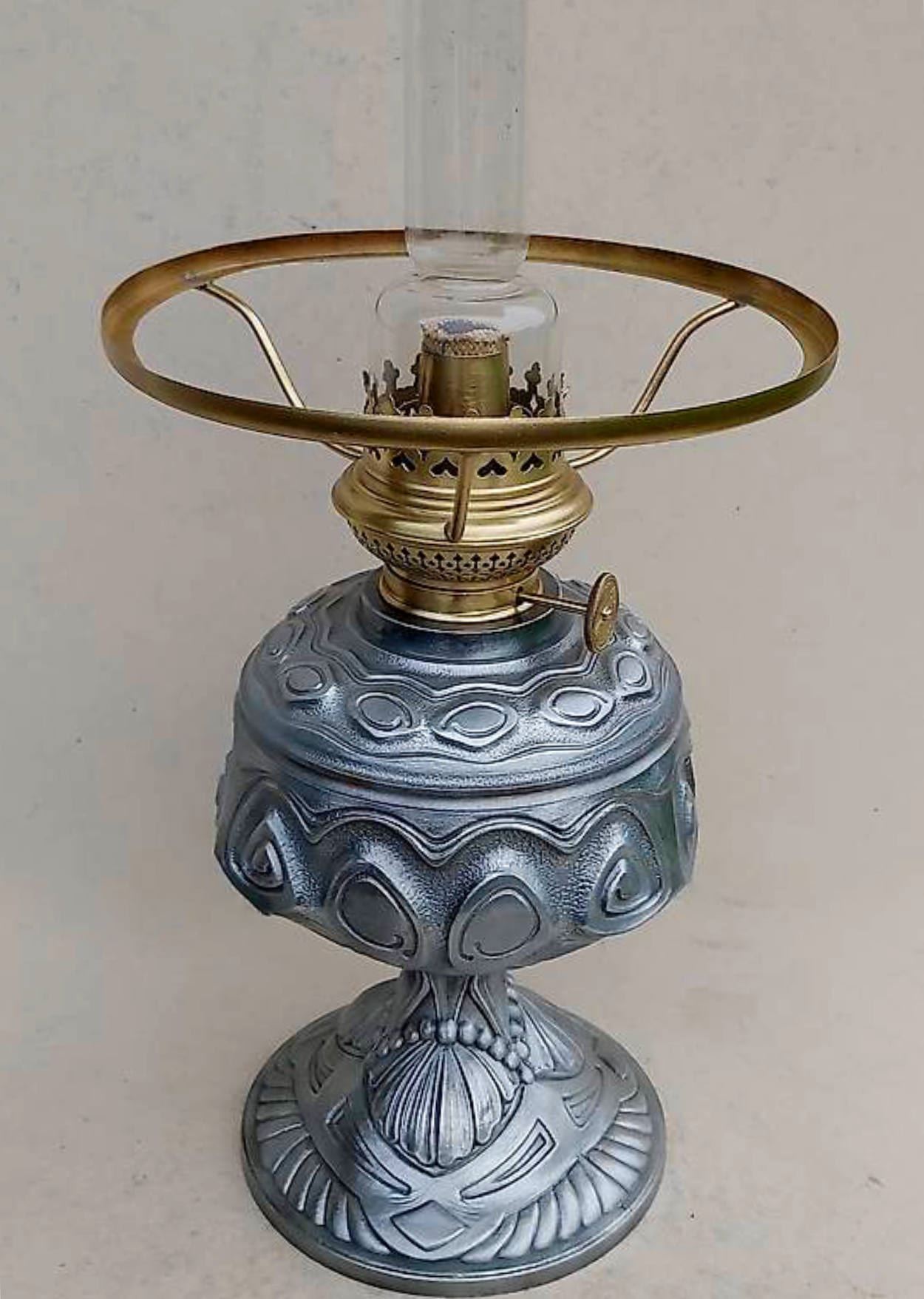 Sehr schöne Petrollampe mit speziellen Jugendstil Verzierungen. Wunderschönes repräsentatives Stück wahrscheinlich so um 1930