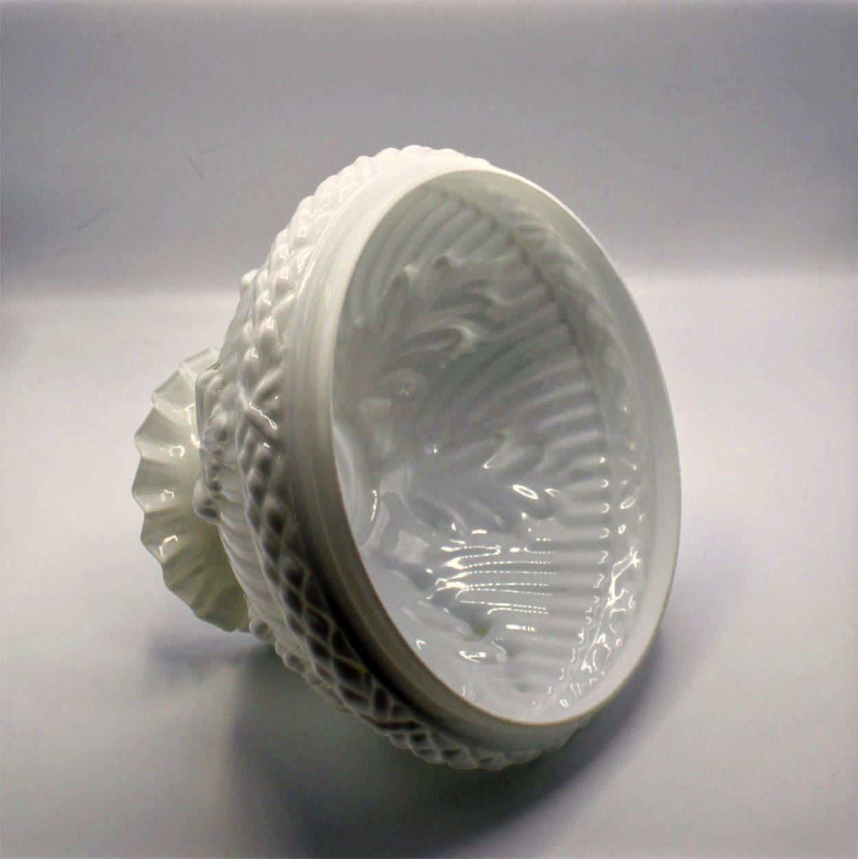schweres Glas geprägt Arcantusblätter, Überfang mit extravagant gepressten weißen Vesta-Schirm aus Großbritannien. Rüschen oben
